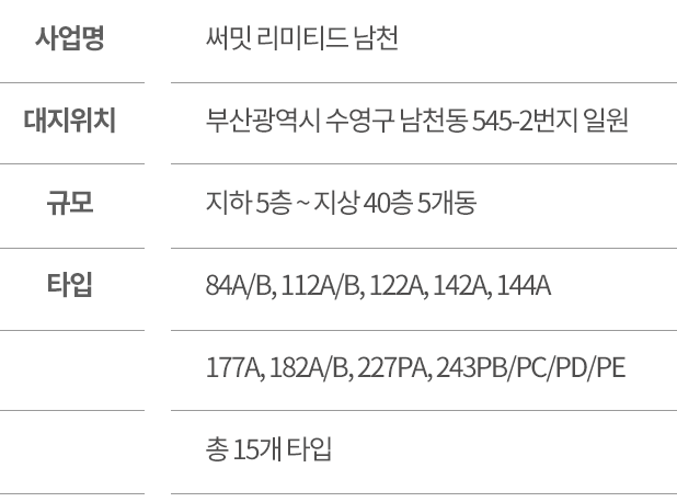 써밋 리미티드 남천 I 주소 : 부산 수영구 남천동 545-2번지 I 대표번호 : 1533-0864