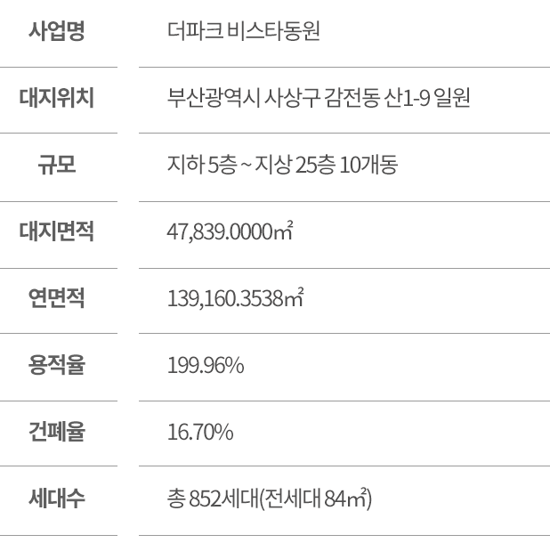 더파크 비스타동원 I 주소 : 부산광역시 사상구 감전동 산1-9 일원 I 대표번호 : 1533-0864